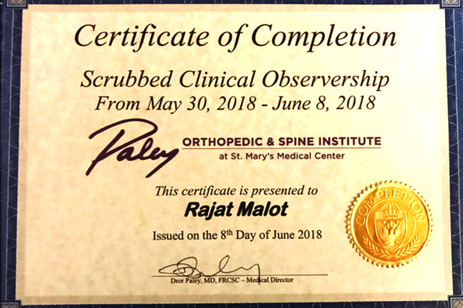Dr Rajat Malot is a senior Paediatric Orthopaedic Surgeon working in Jaipur with experience of more than 12 years. He is running his own Malot hospital and private clinic along with attachments to Surya hospital, Manipal hospital and Birla hospital in jaipur. He has special interest in managing paediatric orthopaedic. He did his MBBS from SMS Medical College, Jaipur. After that, he subsequently did MS in Orthopaedics from the same medical college.He worked as Assistant professor in SMS hospital for 4 years He also worked in MEDANTA HOSPITAL, Gurgaon , Fortis hospital and Shalby hospital as a paediatric orthopaedic surgeon. He did his Fellowship in paediatric orthopaedics from South Korea with Professor Song. He visited Cincinnati Children's hospital in the USA as visiting surgeon. He also visited Paley Institute, the USA for deformity correction learning. Recently he visited Royal Children’s Hospital, Melbourne, Australia for advance technology learning.